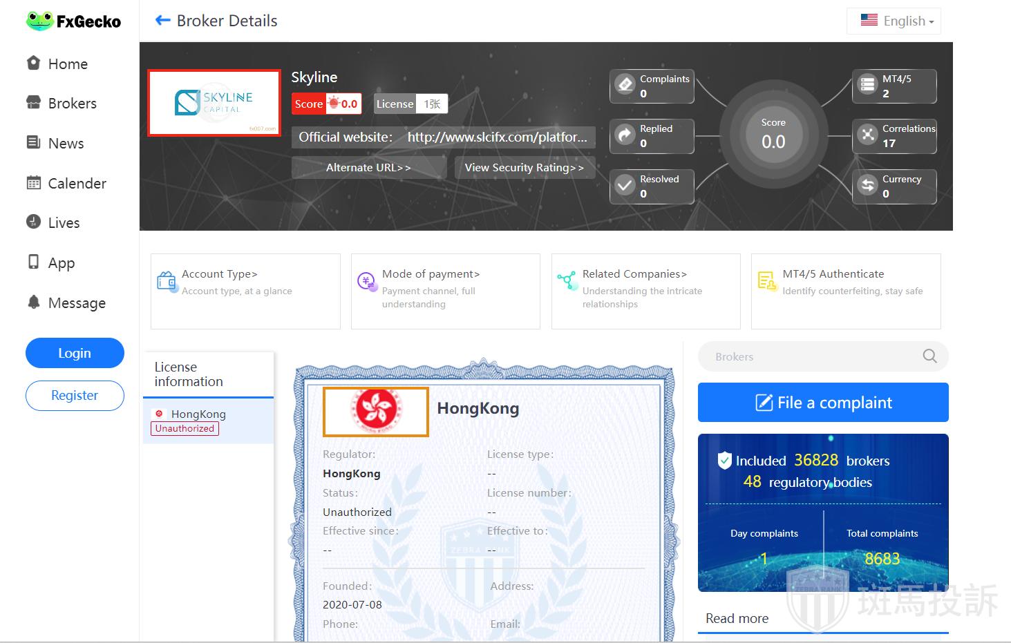 FTI risk warning shows that Skyline has 28 risks. Investors need to pay attention to the relevant risk alerts for this broker.