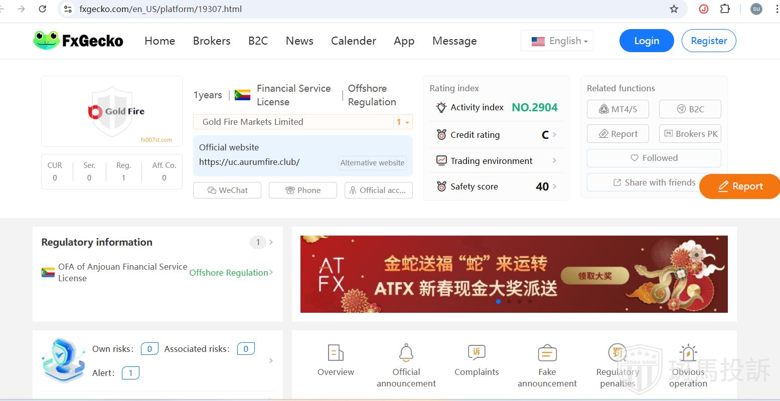 FTI has not received any complaints about Gold Fire forex broker at the moment.