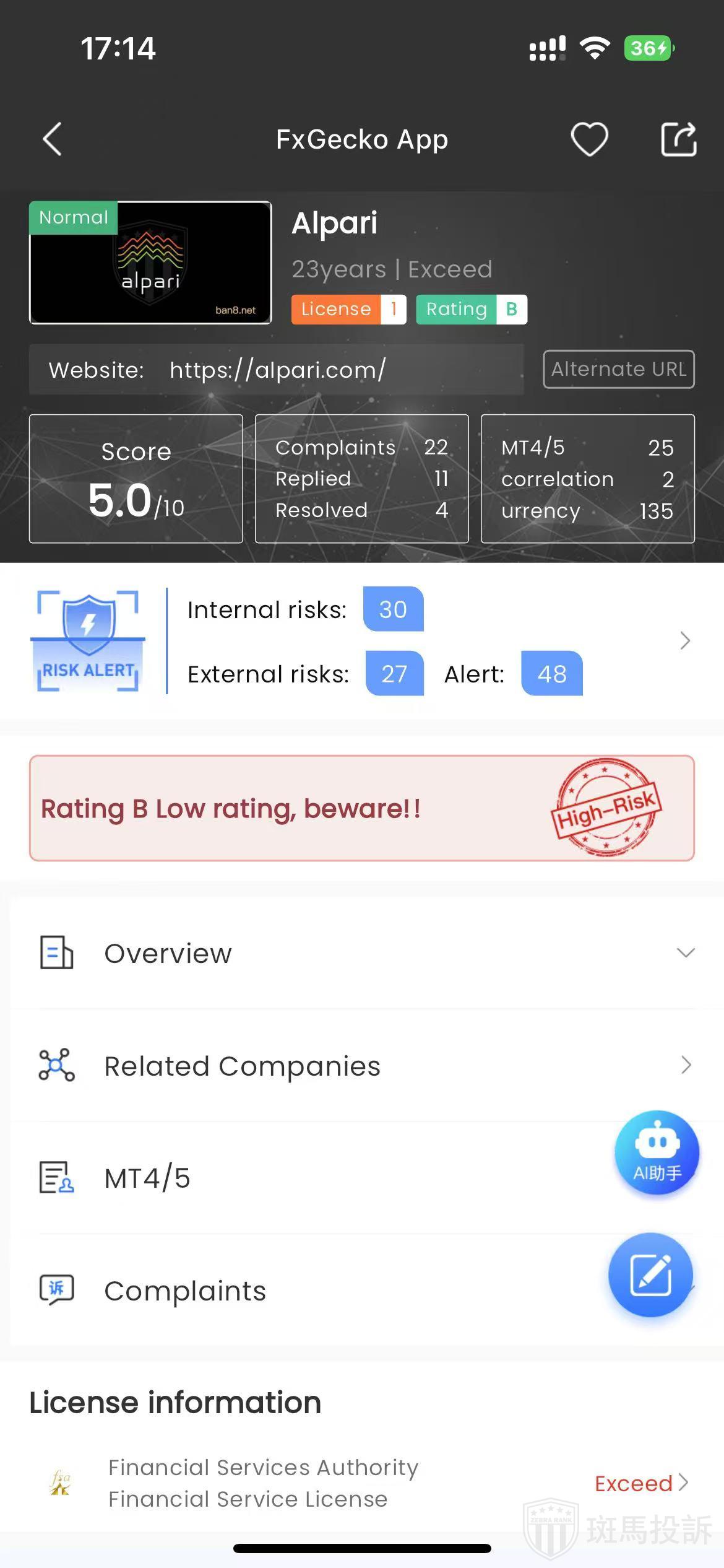 FTI's overall commentary: Alpari's official website is currently operating normally. Complaints arise mainly from issues like erroneous contract quotes or delayed deposits leading to protection concerns and other trading environment problems. Note that there is a lot of negative information, with mixed comments overall. Despite the variety of trading options, complaint resolution tends to be slow.