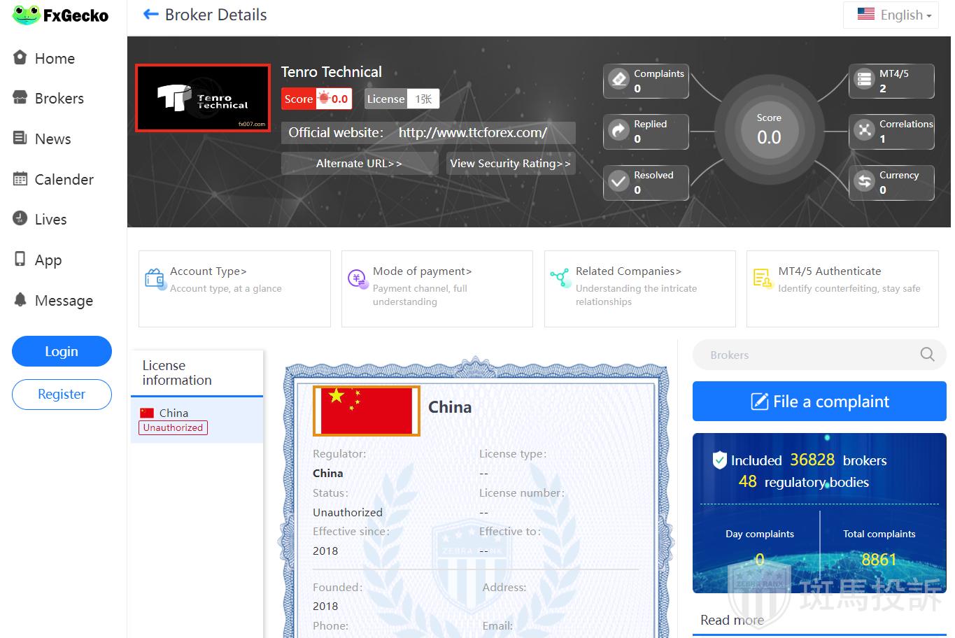 The name of this broker is Tenro Technical, founded 4 years ago and ranked 5201 in the world.