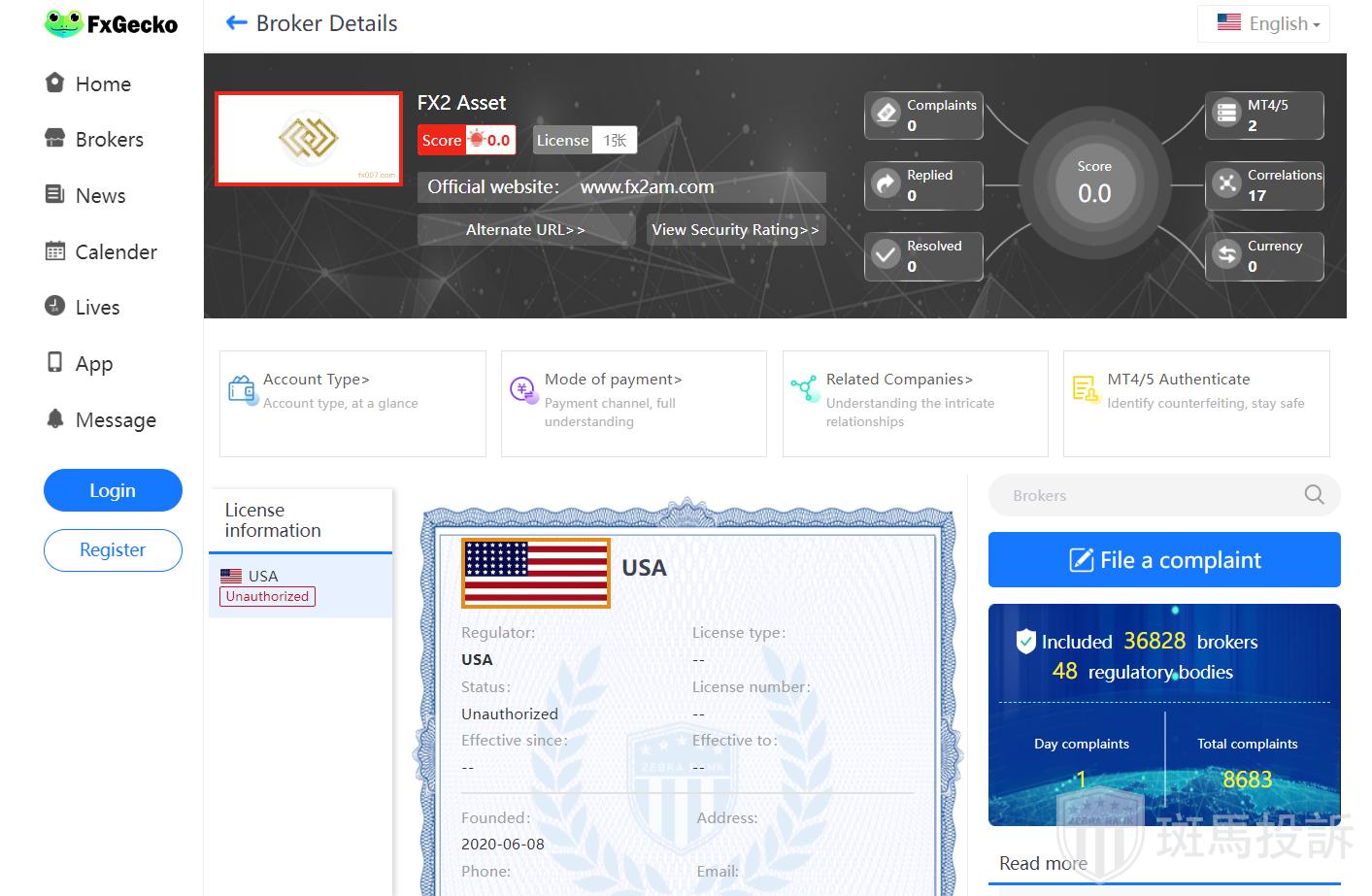 Currently, no valid regulatory information has been found for FX2 Asset, which is a high risk sign, beware!