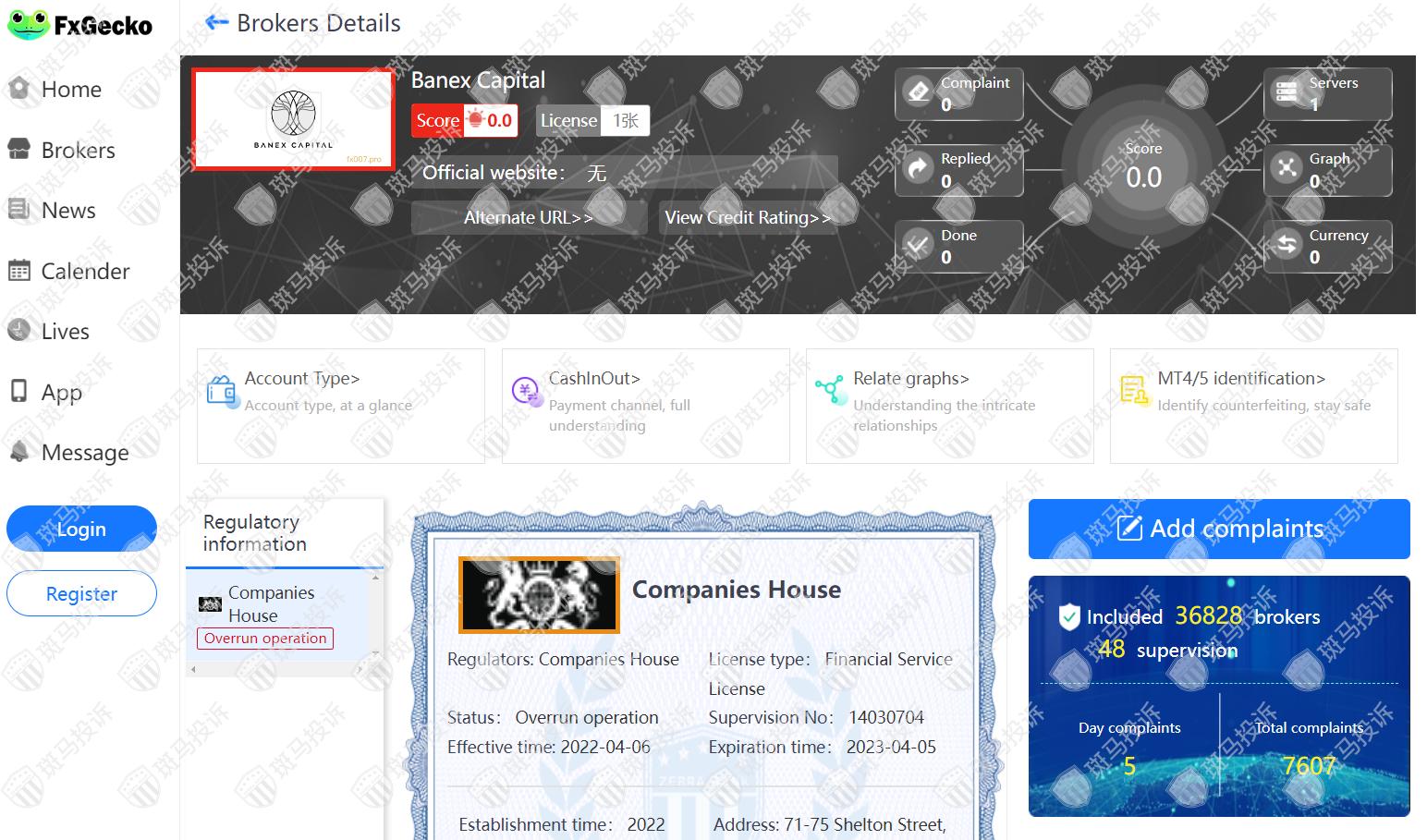 This broker is called Banex Capital which was founded less than 1 year ago and is ranked 2612 in the world. At present, there are 0 foreign exchange licenses, and the risk scan shows 2 risks. Investors need to pay attention to relevant risks.