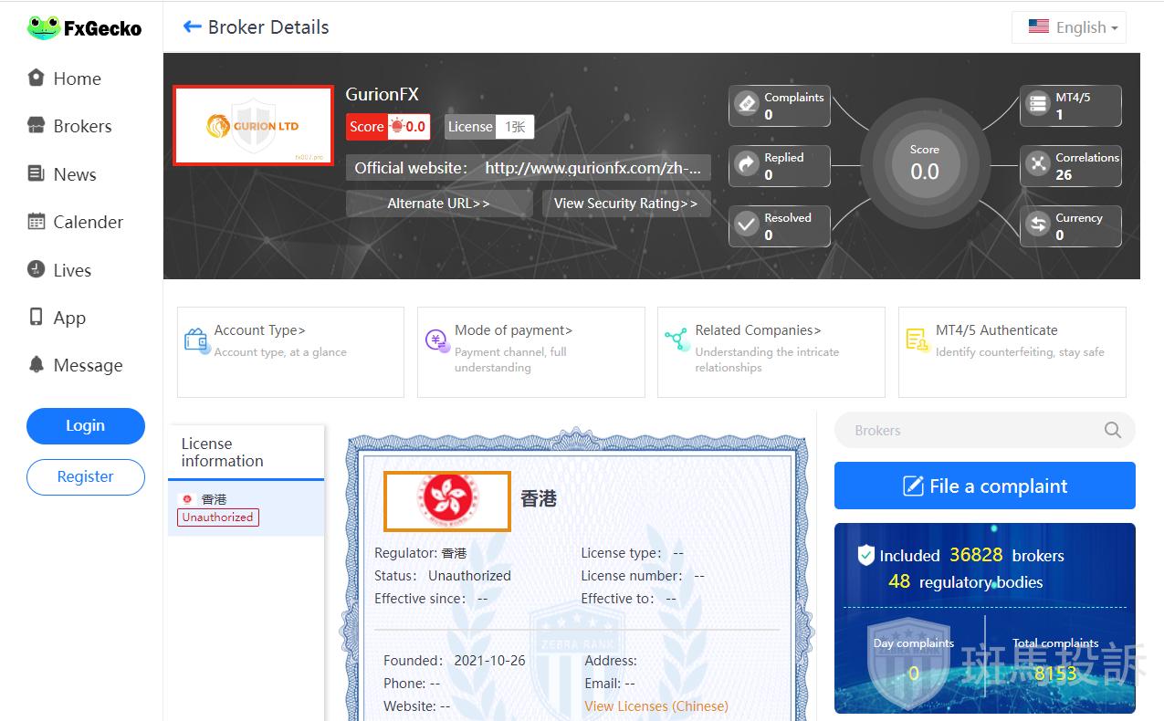 This broker is called GurionFX, which has been established for one year and ranks 4581 in the world. At present, there are 0 foreign exchange license, and the risk scan shows 2 risks. Investors need to pay attention to relevant risks.
