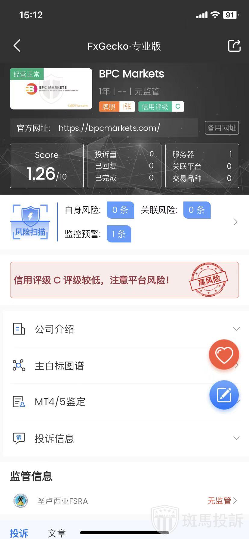 However, according to FTI, BPC Markets holds no regulatory status with the Saint Lucia Financial Services Regulatory Authority (FSRA). There is a monitoring warning issued by FTI, advising investors to be cautious.