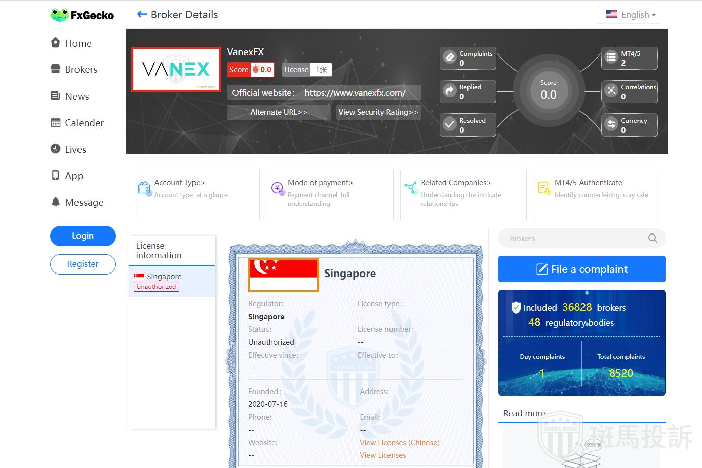 The name of this broker is VanexFX, founded 3 years ago and ranked 4210 in the world.