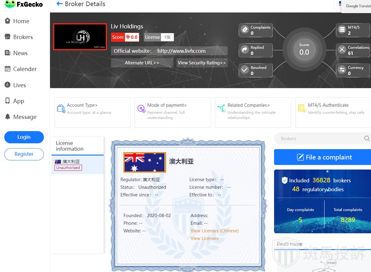 This broker is called Liv Holdings, which has been established for one year and ranks 3039 in the world. At present, there are 0 foreign exchange licenses, and the risk scan shows 31 risks. Investors need to pay attention to relevant risks.