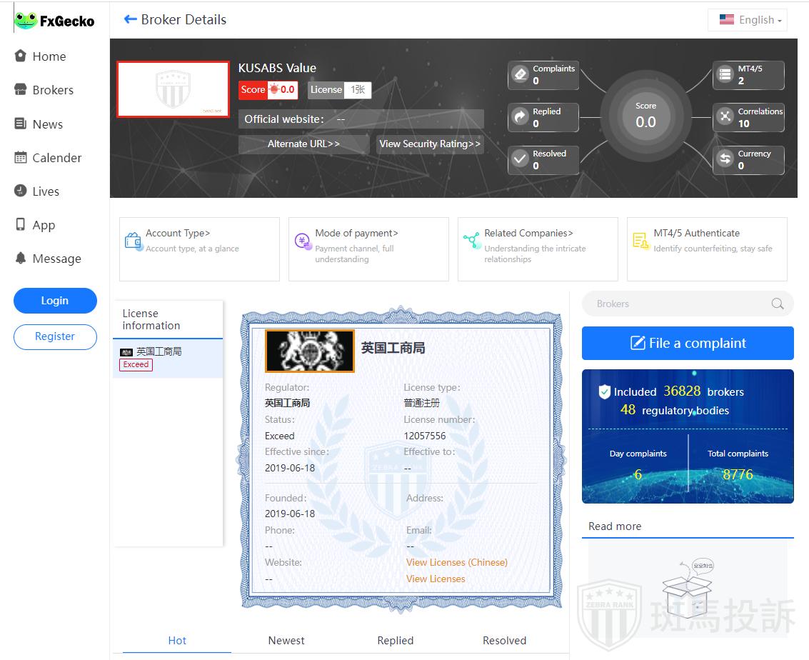 The KUSABS Value platform is registered with the UK Trade and Industry Authority under registration number 12057556, which falls under the category of over-regulated business, but the platform has now been confirmed to have ceased operations.