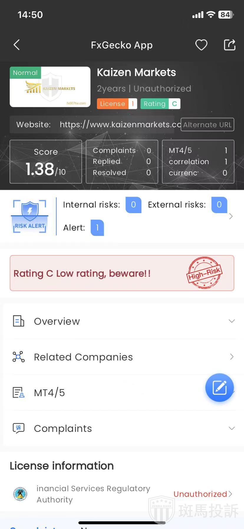 Recently, FTI has noticed a new forex platform called Kaizen Markets, founded 2 years ago and ranked 4296 globally. There are user reports suggesting that despite its recent establishment, the platform is already promoting high-yield forex investments—its reliability is questionable.