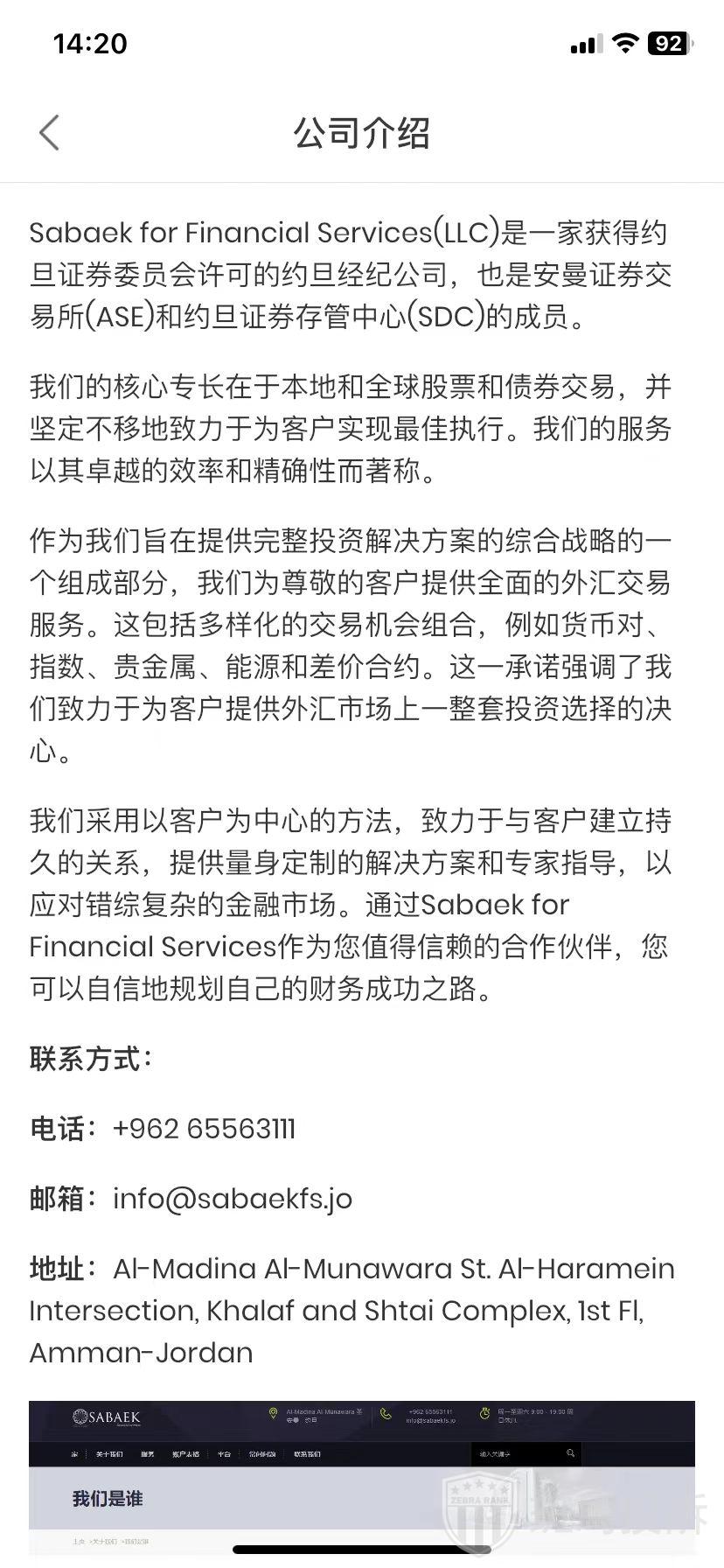 Sabaek for Financial Services (LLC) is a Jordanian brokerage company licensed by the Jordanian Securities Commission and a member of the Amman Stock Exchange (ASE) and the Jordanian Securities Depository Center (SDC)