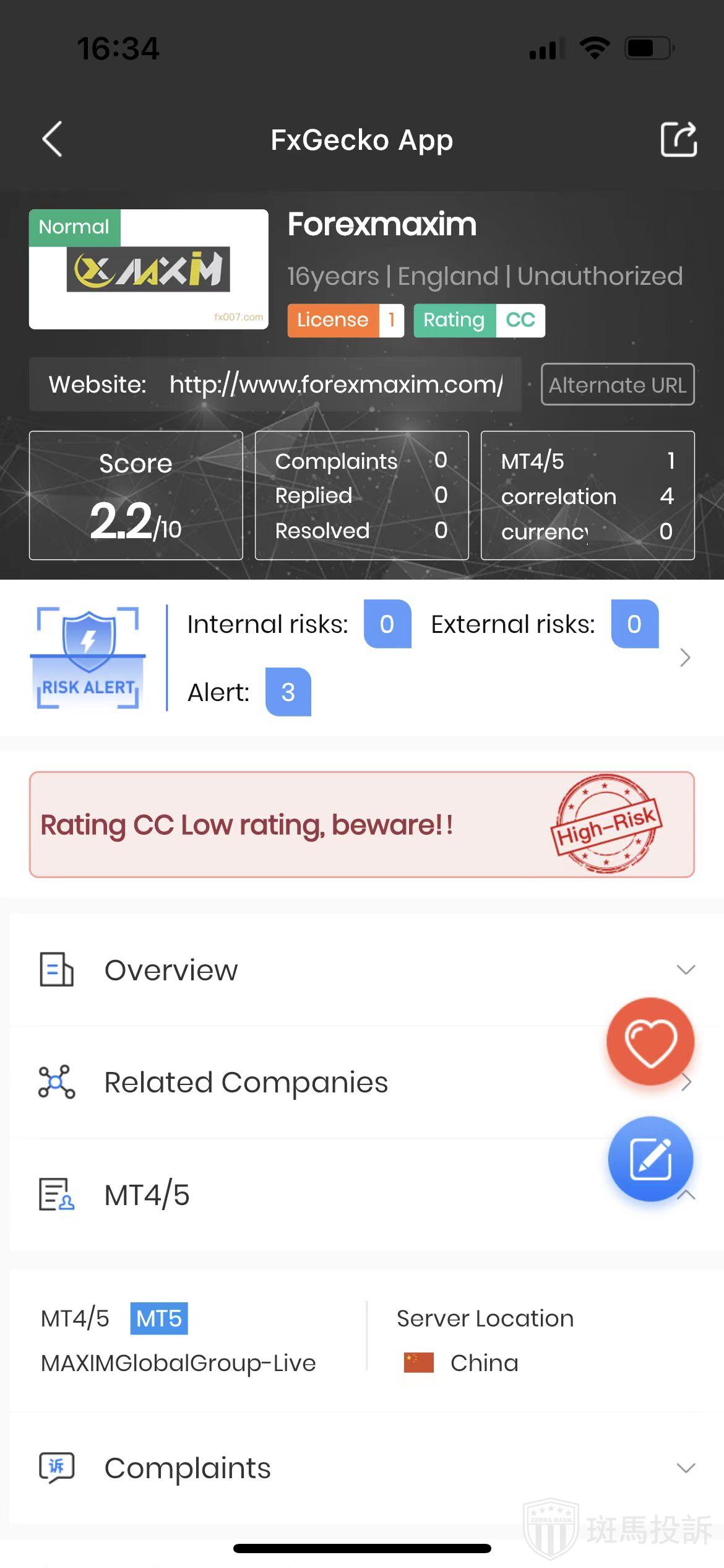 FTI risk warning shows that 美信Forexmaxim has 3 risks. Investors need to pay attention to the relevant risk alerts for this broker.