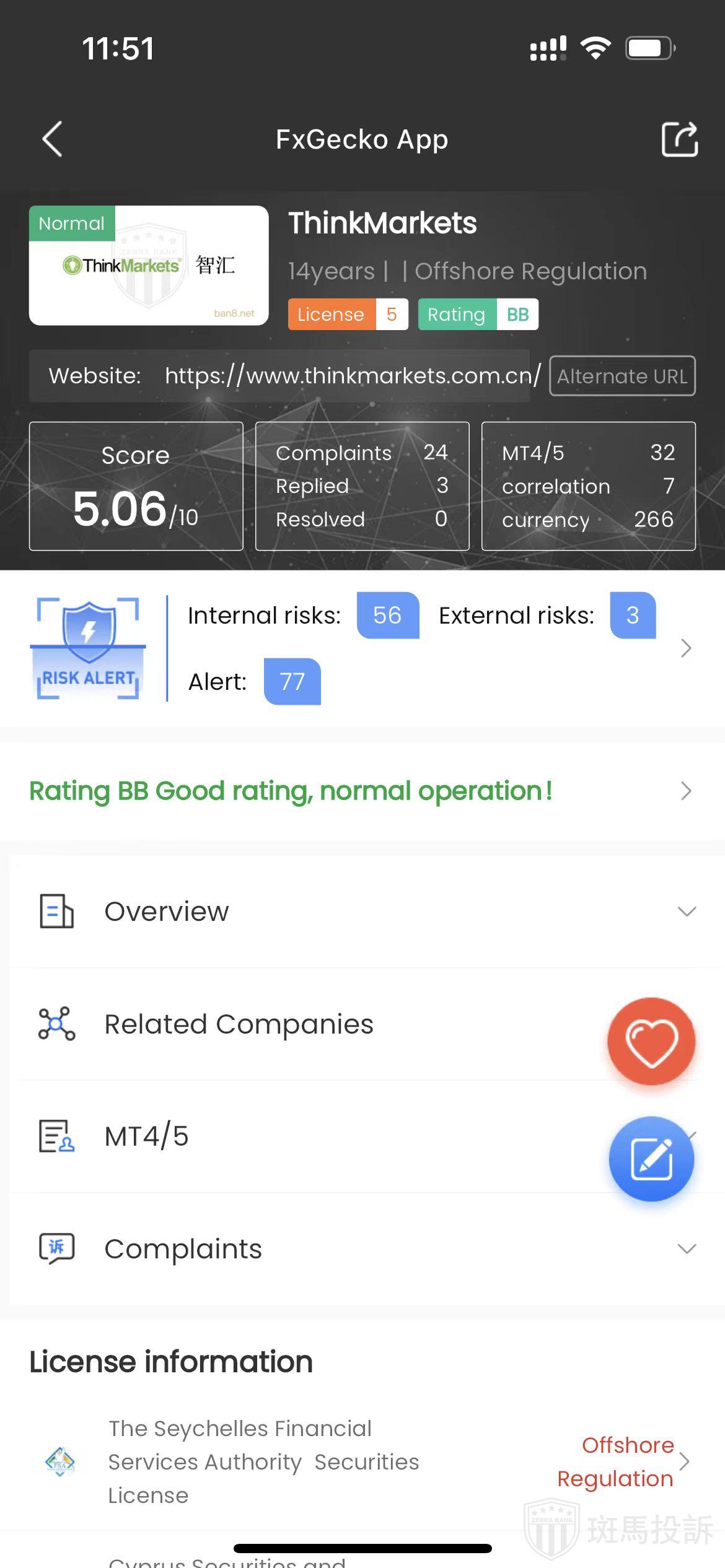 FTI’s Comprehensive Review: ThinkMarkets’ official website is currently operating normally. Complaints primarily revolve around withdrawal issues when accounts are profitable or delays in deposits, affecting the trading environment. These aspects deserve attention. Negative feedback is limited, overall comments are favorable, the variety of tradable instruments is ample, but complaint resolution tends to be slower.