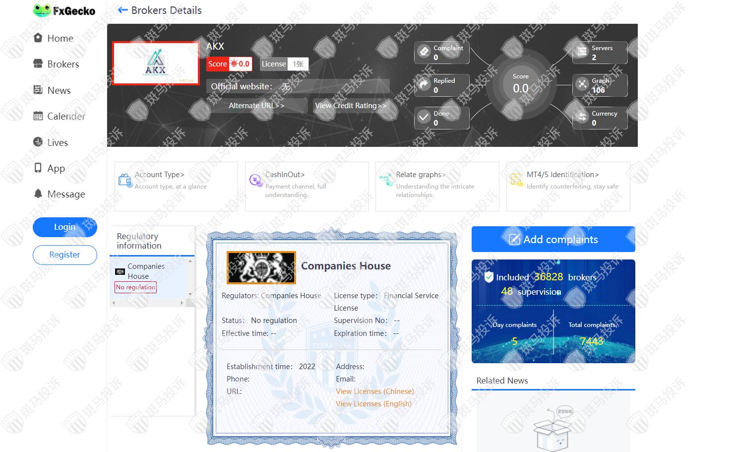 This broker is called AKX, which has been established for one year and ranks 5662 in the world. At present, there is no foreign exchange license,and the risk scan shows twenty-eight risks. Investors need to pay attention to relevant risks.