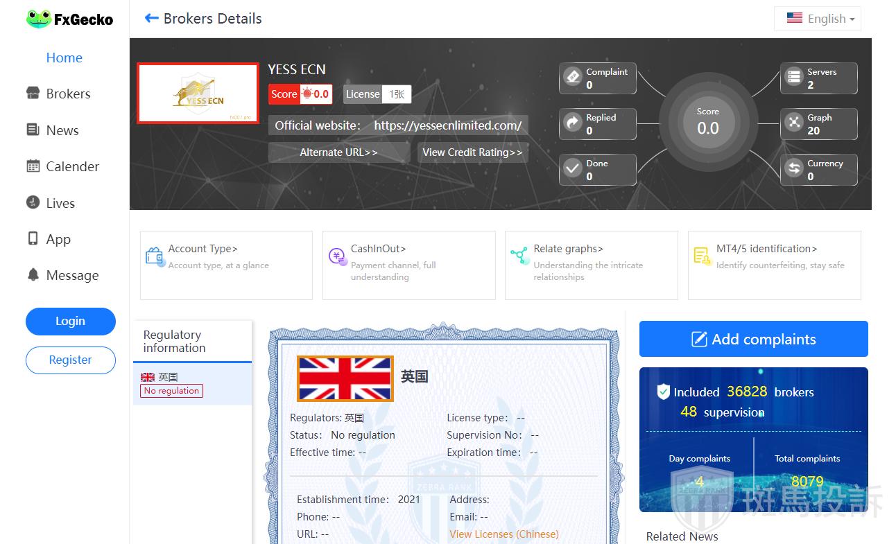 This broker is called YESS ECN, which has been established for one year and ranks 3760 in the world. At present, there are 0 foreign exchange licenses, and the risk scan shows 2 risks. Investors need to pay attention to relevant risks.