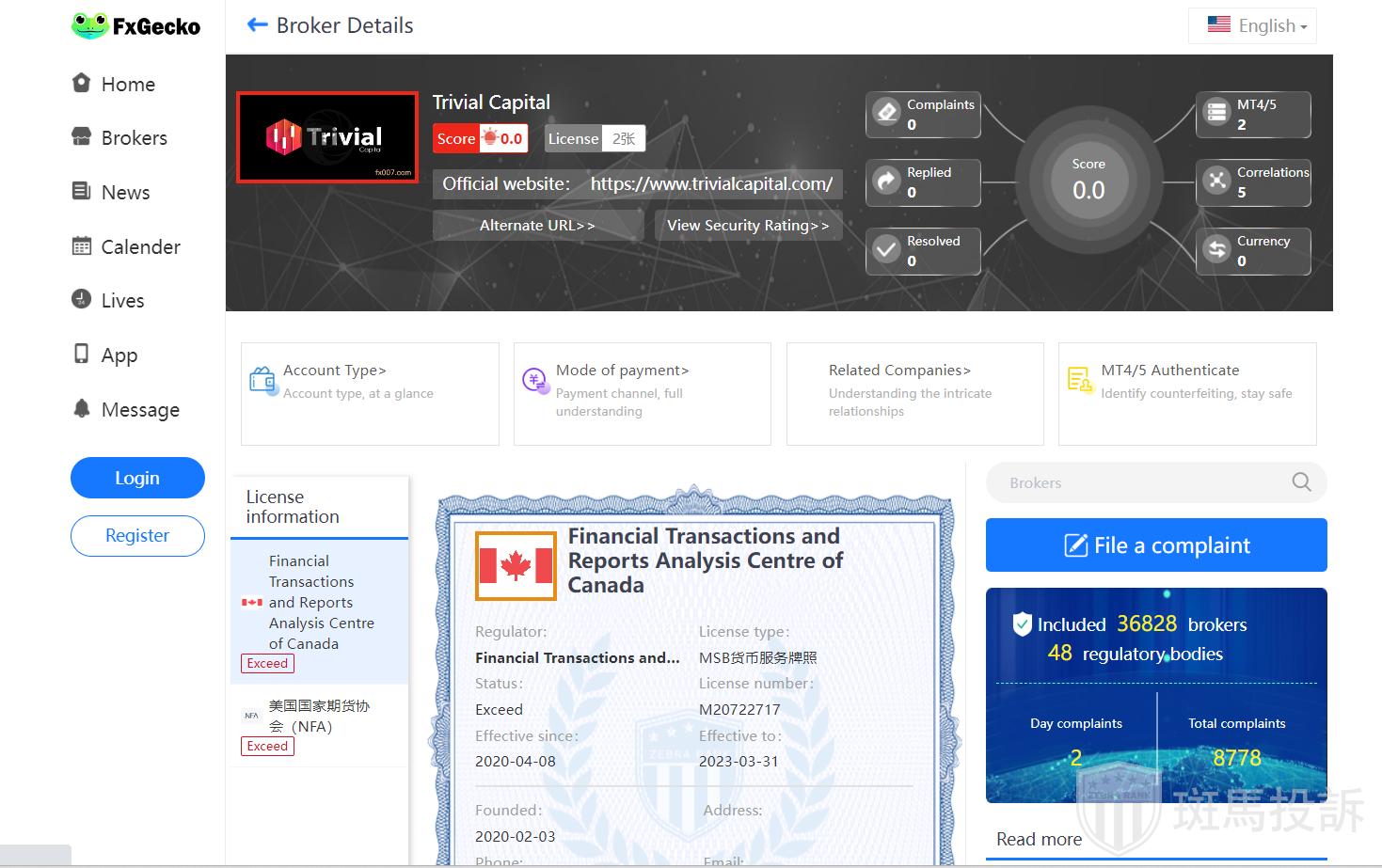 Currently, no valid regulatory information has been found for Trivial Capital, which is a high risk sign, beware!