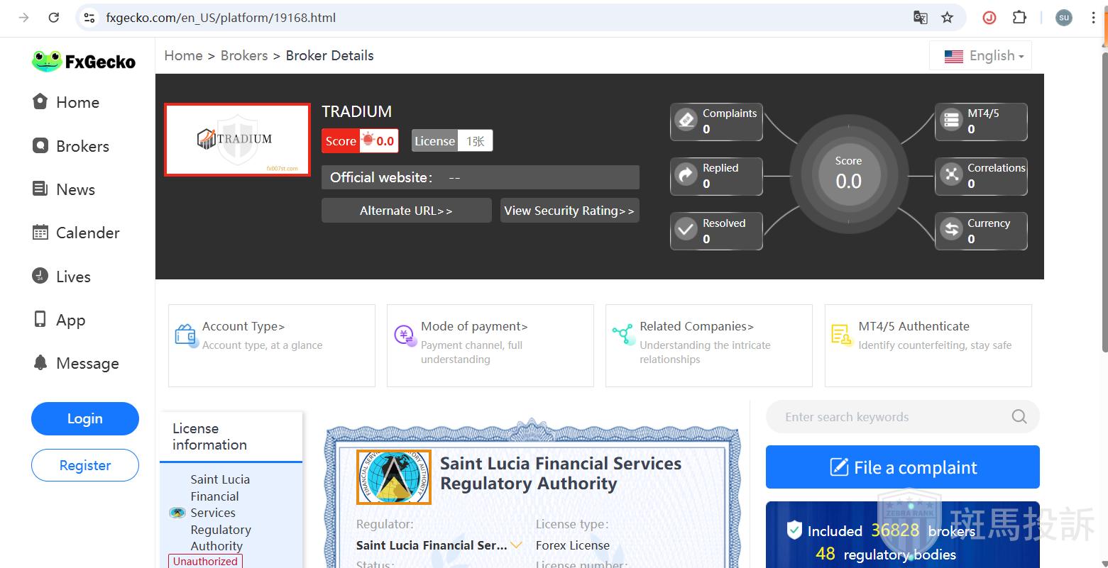 Currently, no valid regulatory information has been found for TRADIUM, which is a high risk sign, beware!