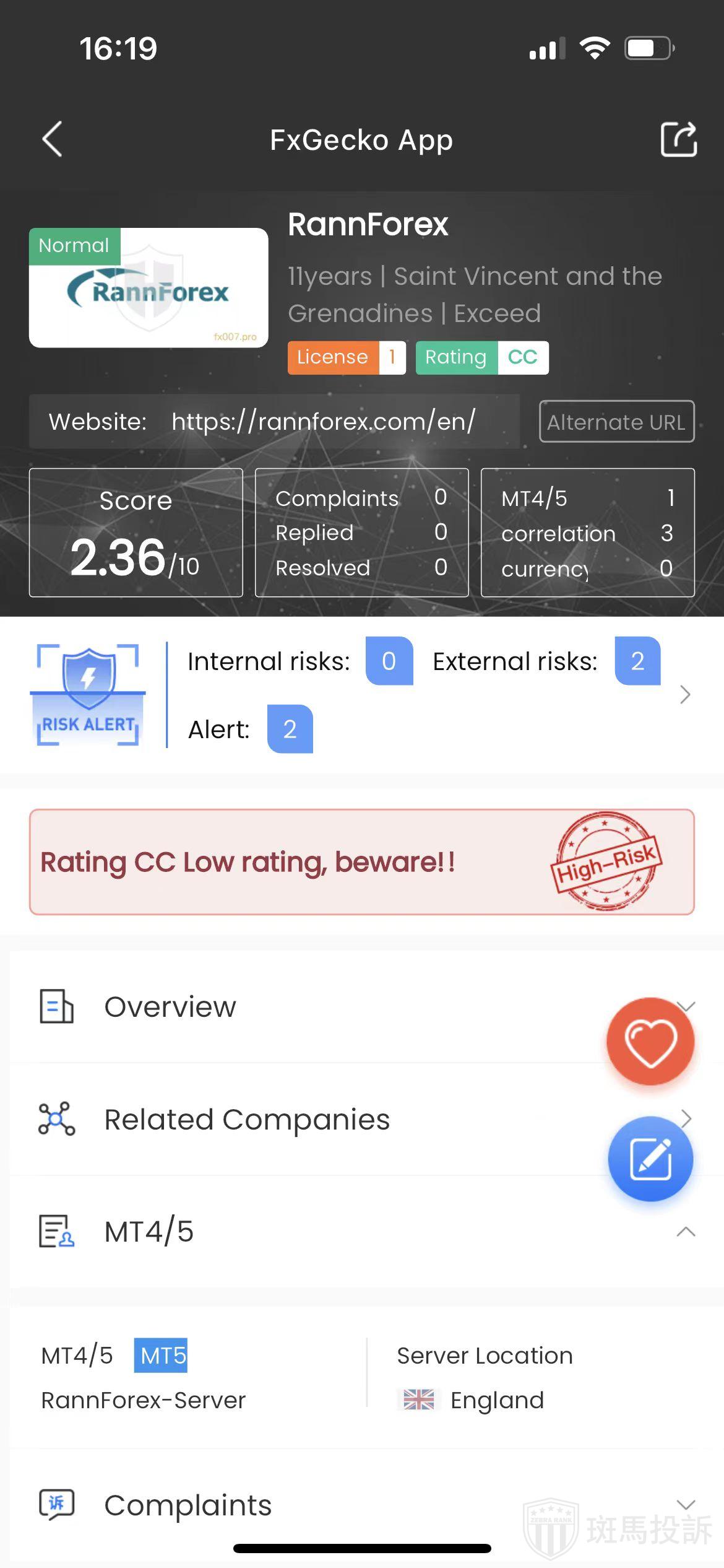 FTI risk warning shows that RannForex has 4 risks. Investors need to pay attention to the relevant risk alerts for this broker.
