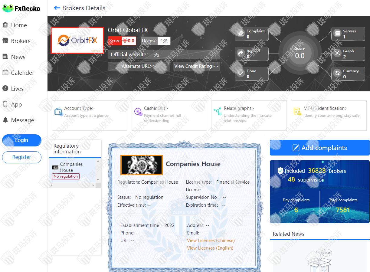 This broker is called Orbit Global FX, which has been established for one year and ranks 4683 in the world. At present, there are 0 foreign exchange licenses, and the risk scan shows 1 risks. Investors need to pay attention to relevant risks.