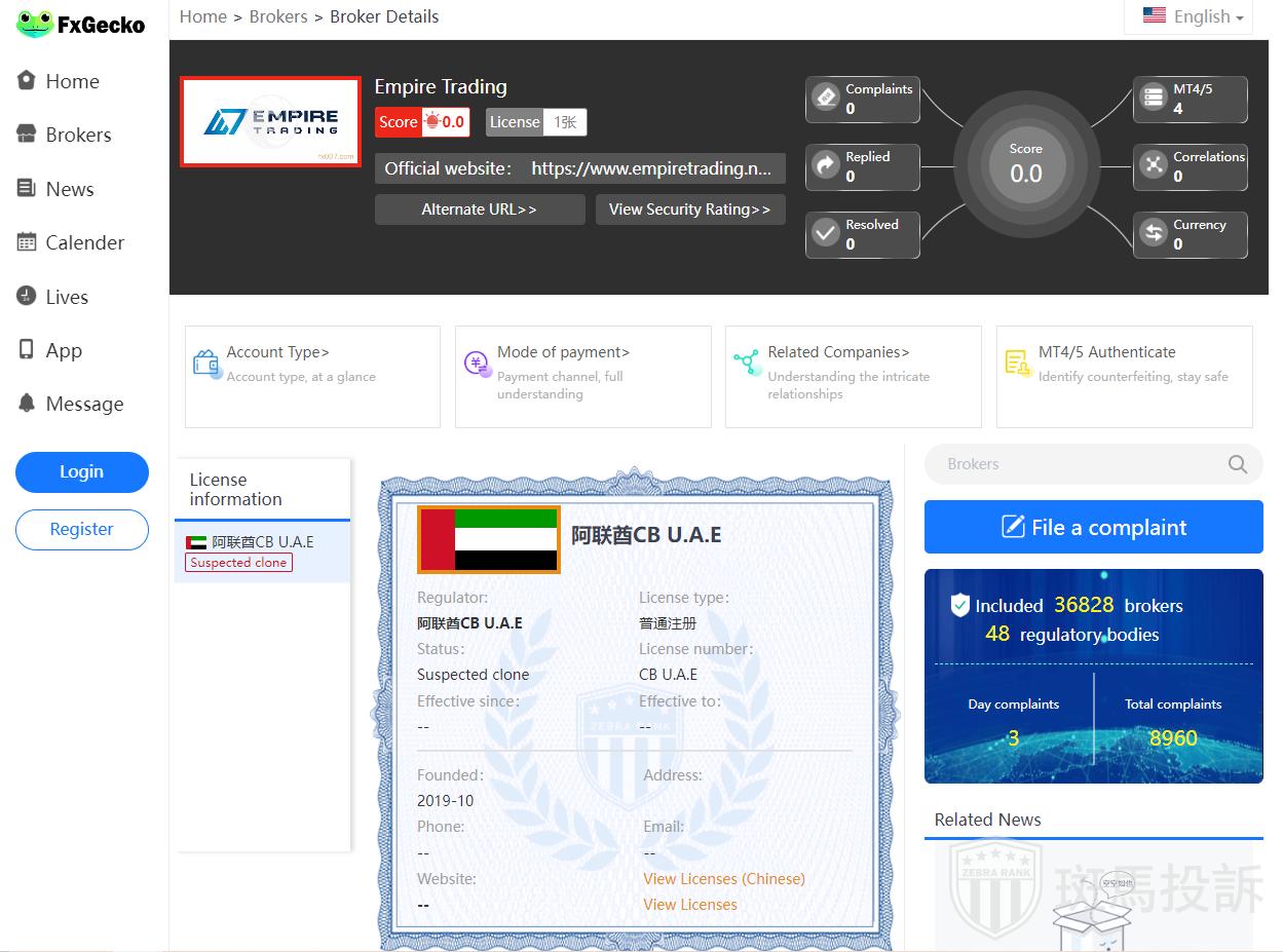 The Empire Trading platform's license registered with CB U.A.E in the UAE seems to be a set-up, so be careful to identify it.