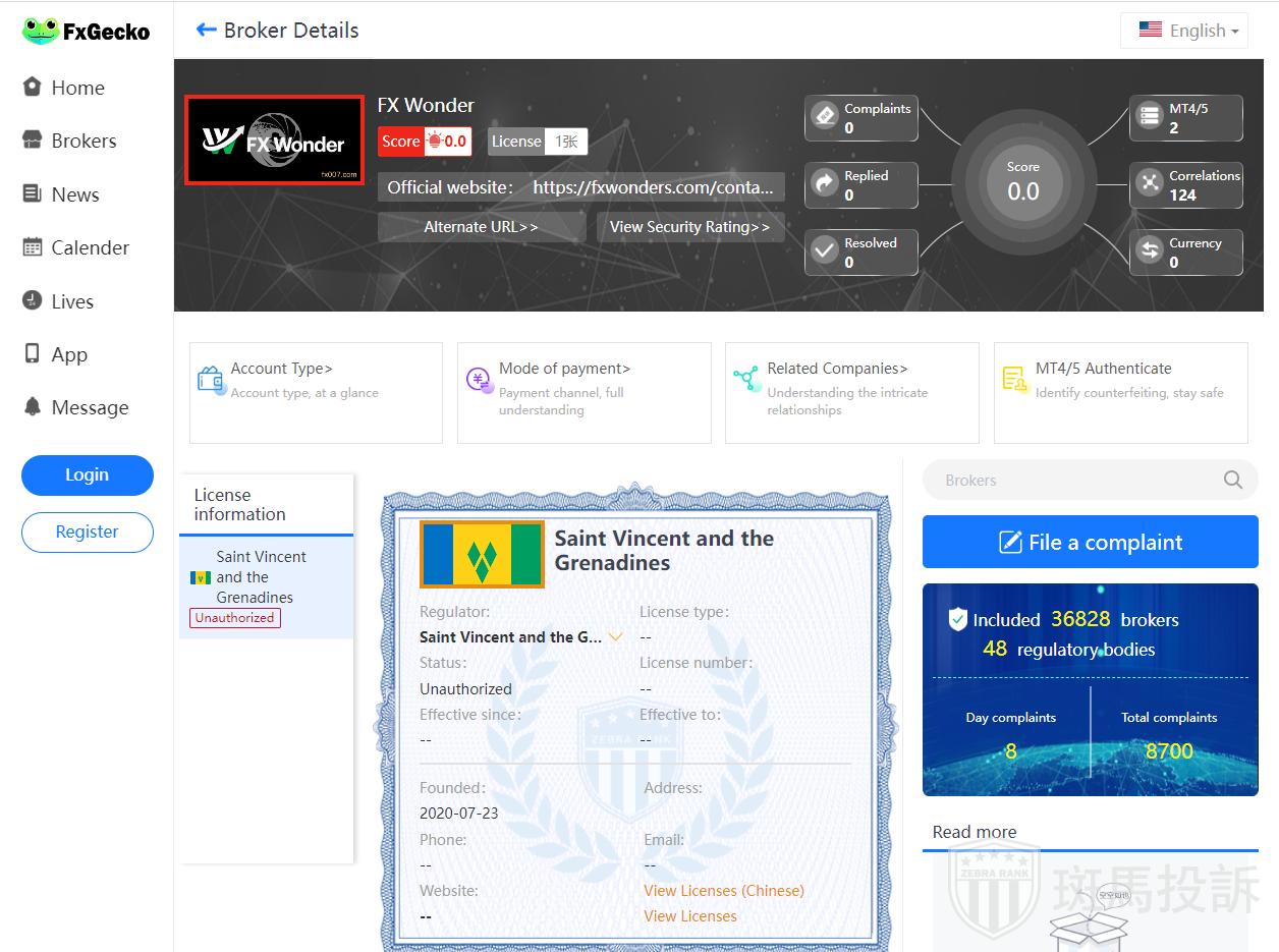 Currently, no valid regulatory information has been found for FX Wonder, which is a high risk sign, beware!