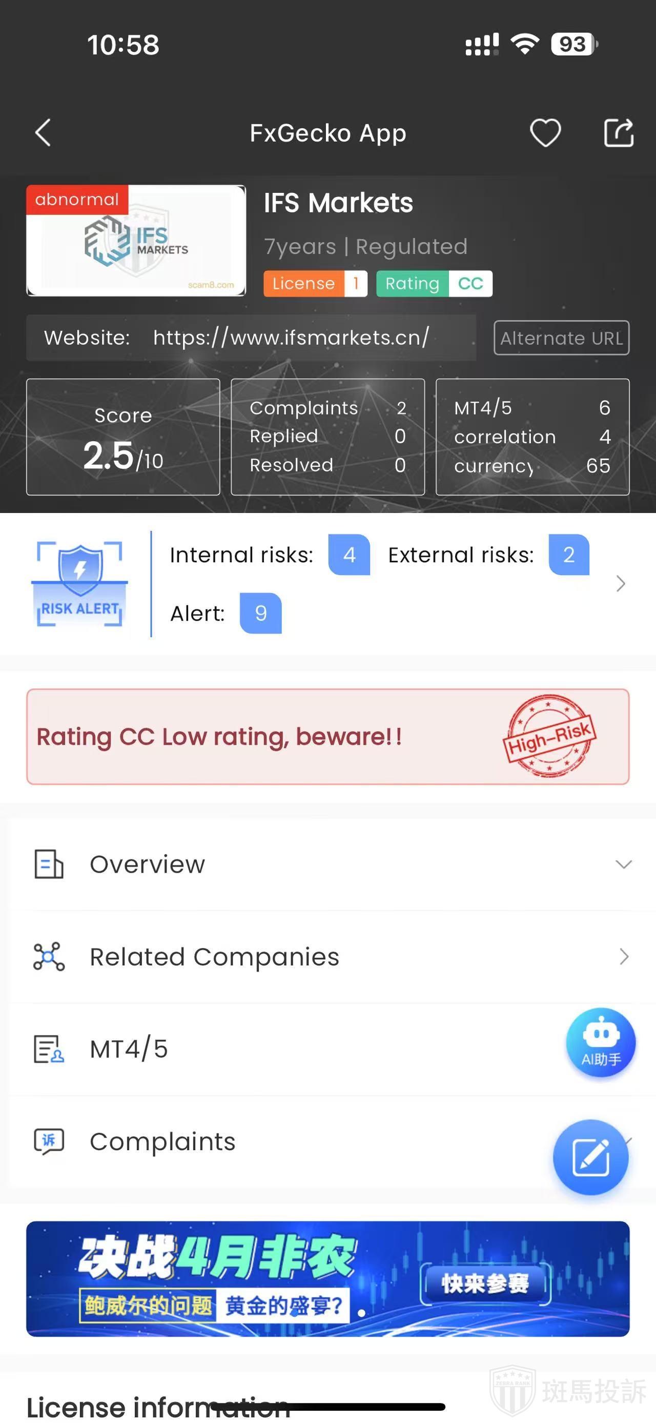 FTI's inquiry shows that the platform named IFS Markets was established in 2018, currently ranks 1456th globally, with a safety score of 50. The platform claims to hold an Australian ASIC market maker license, with 15 risk scan alerts. IFS Markets is considered a relatively reputable forex company. It is a well-known Australian brokerage firm regulated by multiple countries, boasting a large number of users and good word-of-mouth among them. In the first half of 2018, the company held a press conference in Hong Kong, attended by the CEO of its Australian branch, demonstrating certain market influence and industry standing.