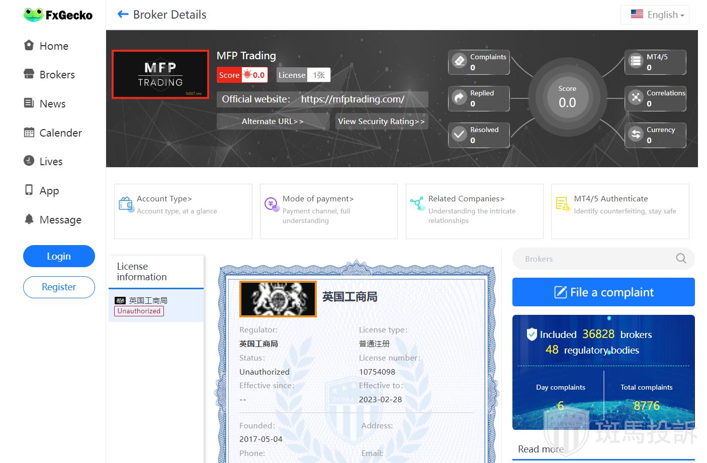 Currently, no valid regulatory information has been found for MFP Trading, which is a high risk sign, beware!