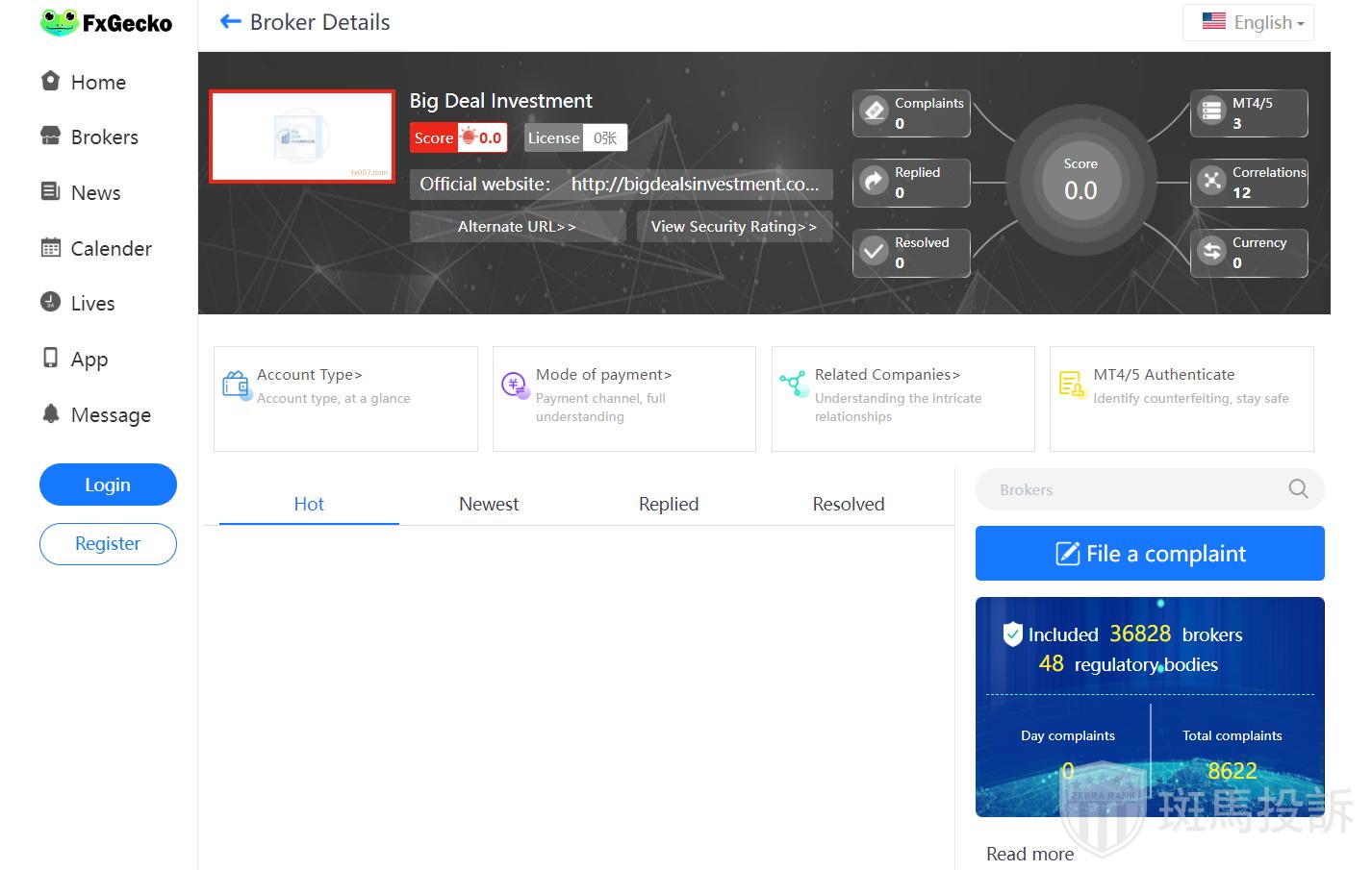 The name of this broker is Big Deal Investment, founded 3 years ago and ranked 6160 in the world.