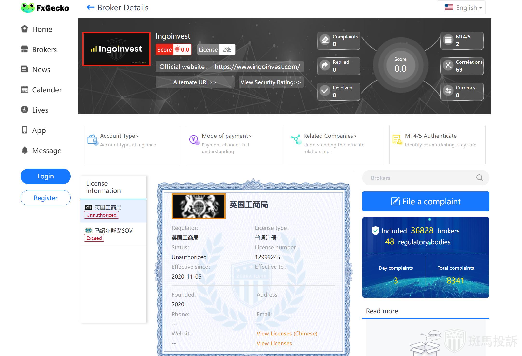 This broker is called Ingoinvest, which has been established for one year and ranks 1758 in the world. At present, there is no foreign exchange license,and the risk scan shows 20 risks.Investors need to pay attention to relevant risks.