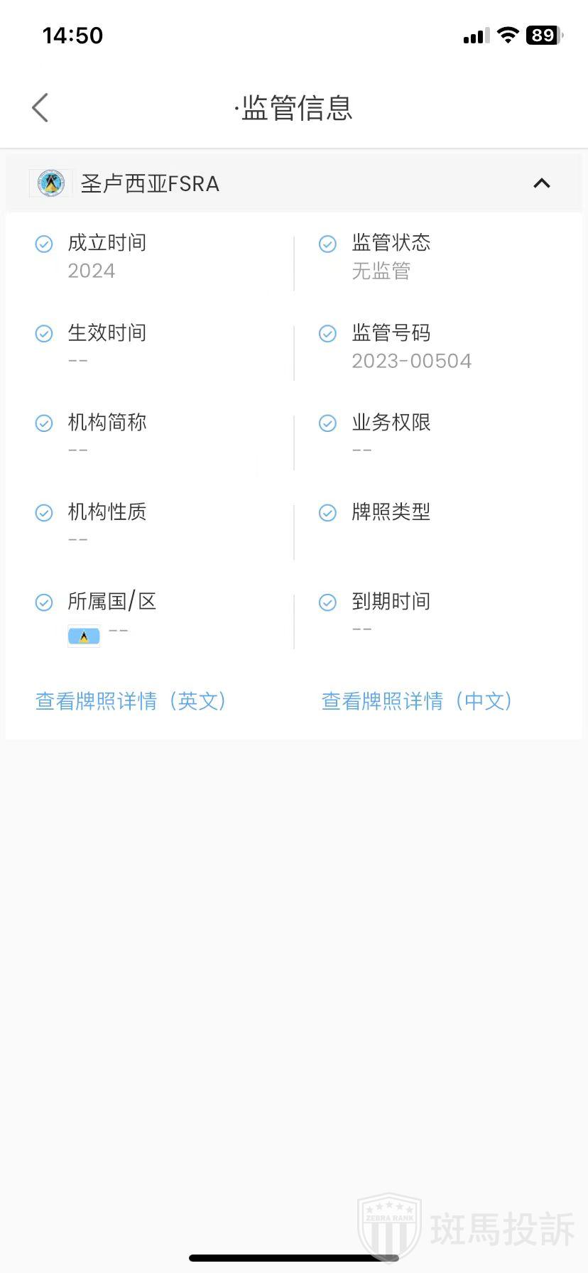 Fxkeydisplays regulatory information for one company in FTI. The regulatory status of the Saint Lucia FSRA held is unregulated. The safety of investor funds is not guaranteed!
