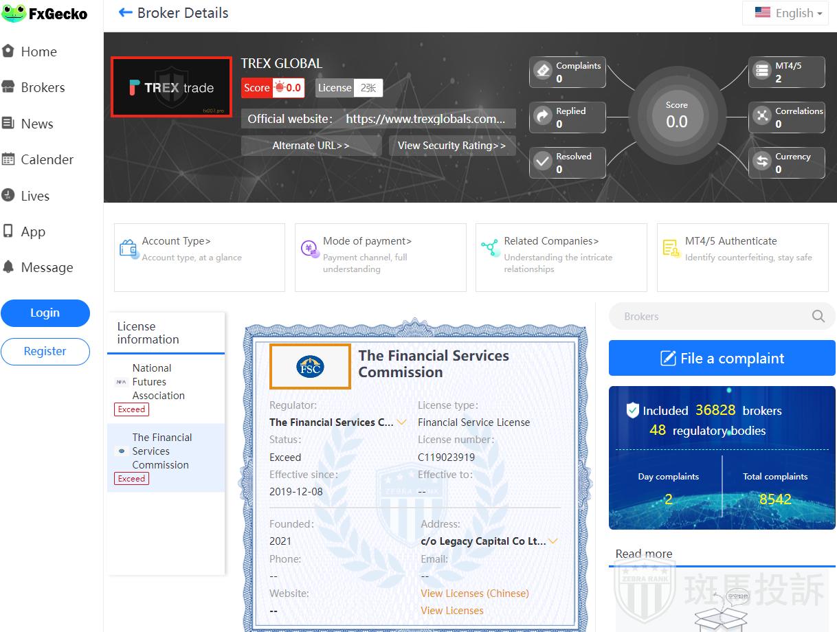 Currently, no valid regulatory information has been found for TREX GLOBAL, which is a high risk sign, beware!