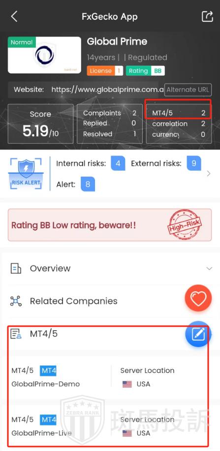 Founded in 2011, Global Prime is a forex broker based in Australia. In terms of global rankings, it is ranked 132nd out of 132 brokers. The company offers 2 MT4 servers, both located in the United States. In terms of master-white label relationships, Global Prime has 2 affiliated brokers, with Gleneagle operating only overseas and the other affiliated broker operating normally.