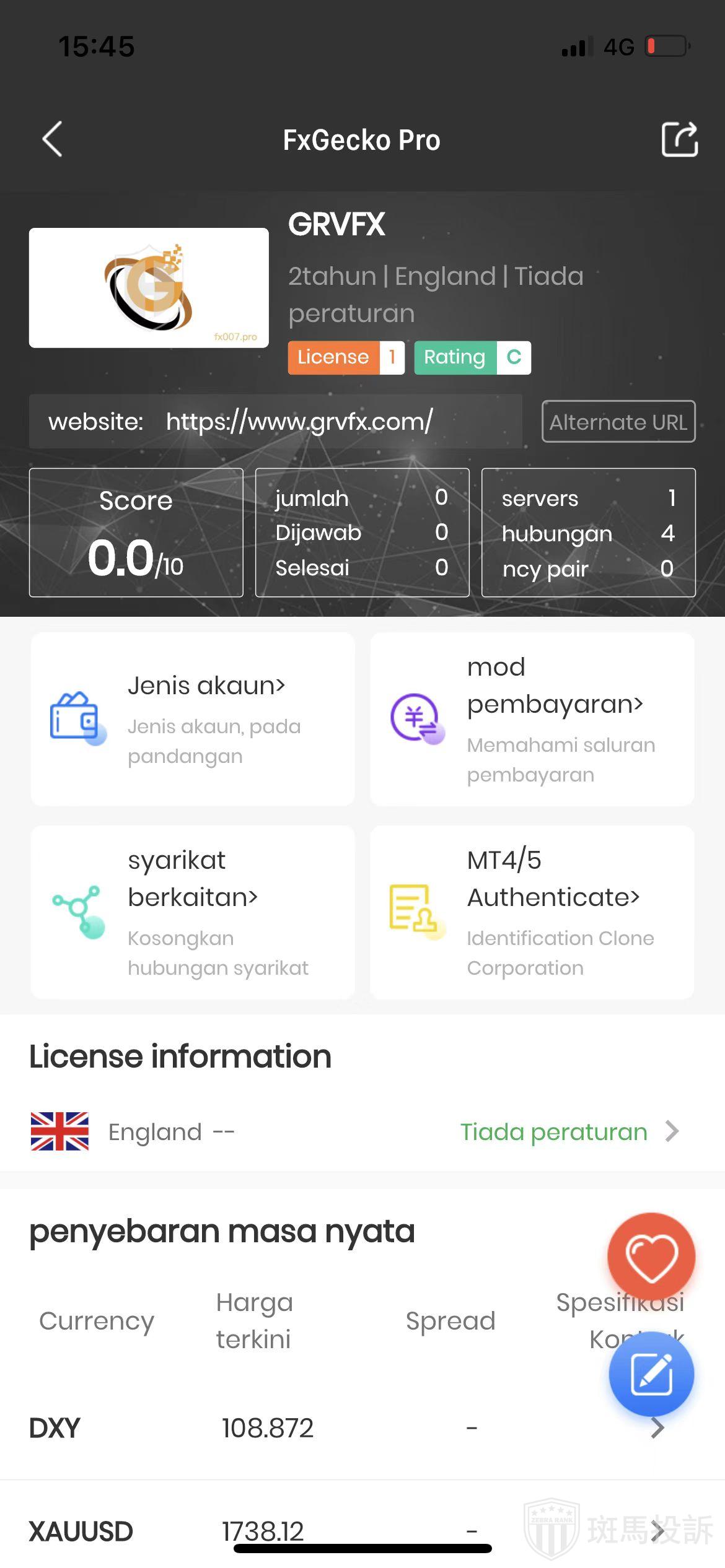 This broker is called GRVFX, which has been established for one year and ranks 4238 in the world. At present, there are 0 foreign exchange licenses, and the risk scan shows 1 risks. Investors need to pay attention to relevant risks.
