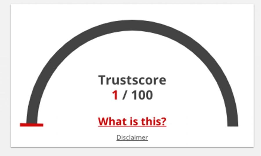 The trust score of the website is extremely low — only 1 out of 100 (FTI).
