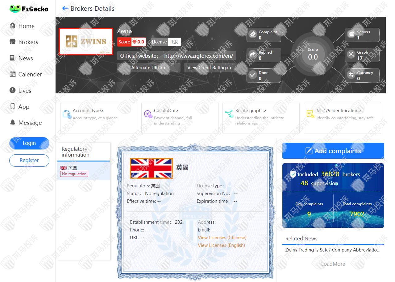 This broker is called Zwins, which has been established for one year and ranks 3565 in the world. At present, there is no foreign exchange license,and the risk scan shows 67 risks.Investors need to pay attention to relevant risks.