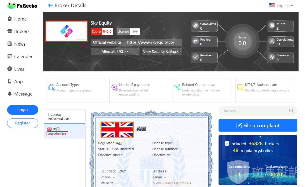 This broker is called Sky Equity, which has been established for one year and ranks 3518 in the world. At present, there are 0 foreign exchange license, and the risk scan shows 4 risks. Investors need to pay attention to relevant risks.
