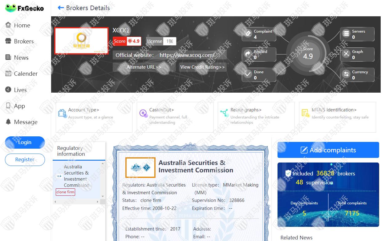 This broker is called XCOQ, which has been established for one year and ranks 5498 in the world. At present, there are 1 foreign exchange licenses, but there is hedging, and the risk scan shows 1 risks. Investors need to pay attention to relevant risks.