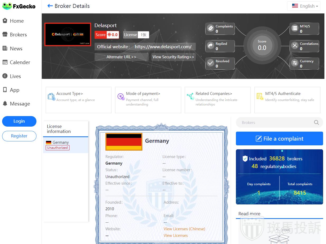 The main white label relationship shows that there are 0 associated brokers on the Delasport.We need to pay attention to whether the associated brokers are running away.This is the business risk of the brokers and the past business history,which can be used as an important reference condition for selecting brokers.The broker relationship data comes from the data of MetaQuotes.