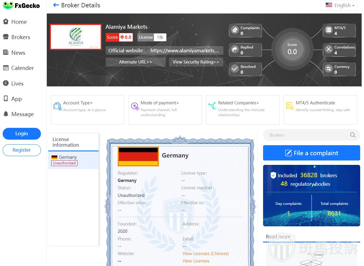 Currently, no valid regulatory information has been found for Alamiya Markets, which is a high risk sign, beware!