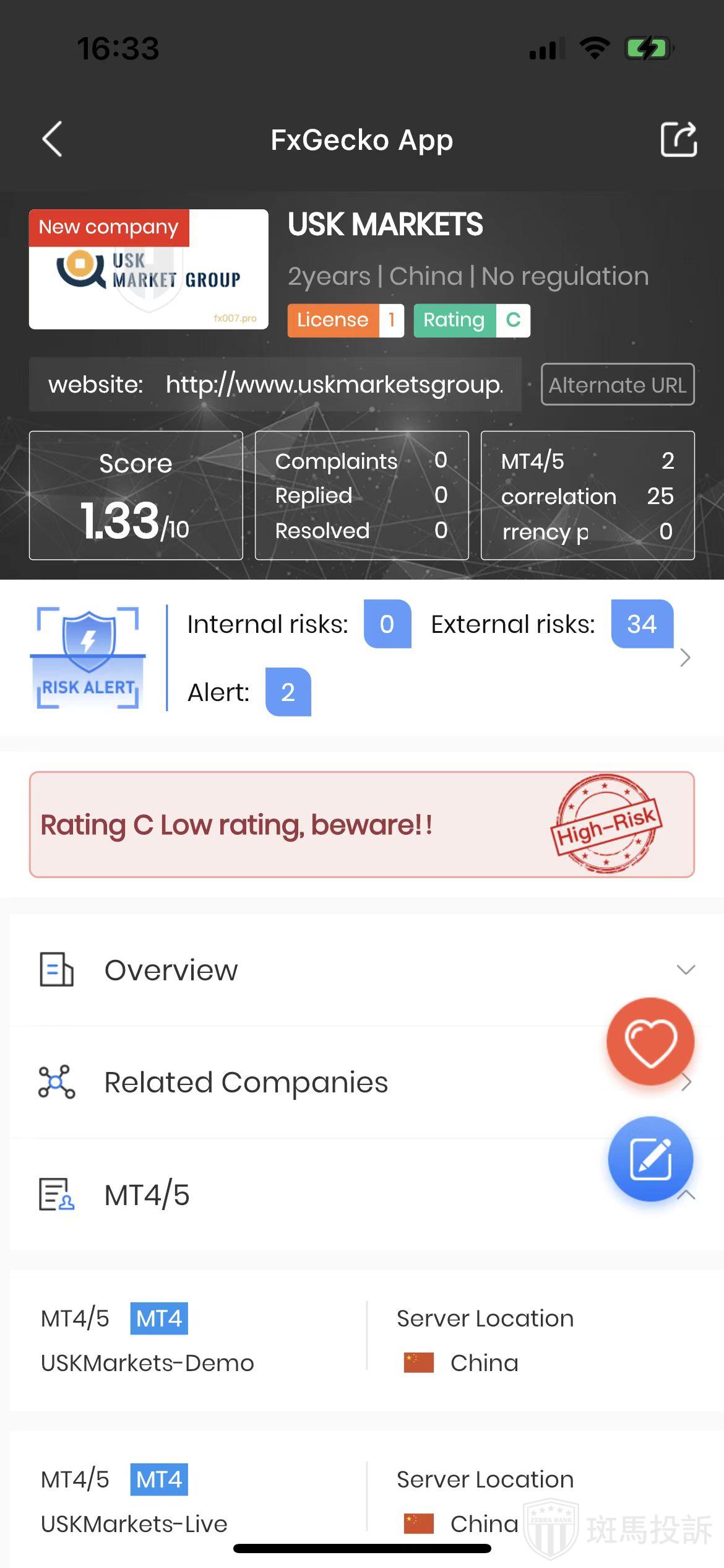 This broker is called USK MARKETS, which has been established for one year and ranks 4310 in the world. At present, there are 0 foreign exchange licenses, and the risk scan shows 36 risks. Investors need to pay attention to relevant risks.