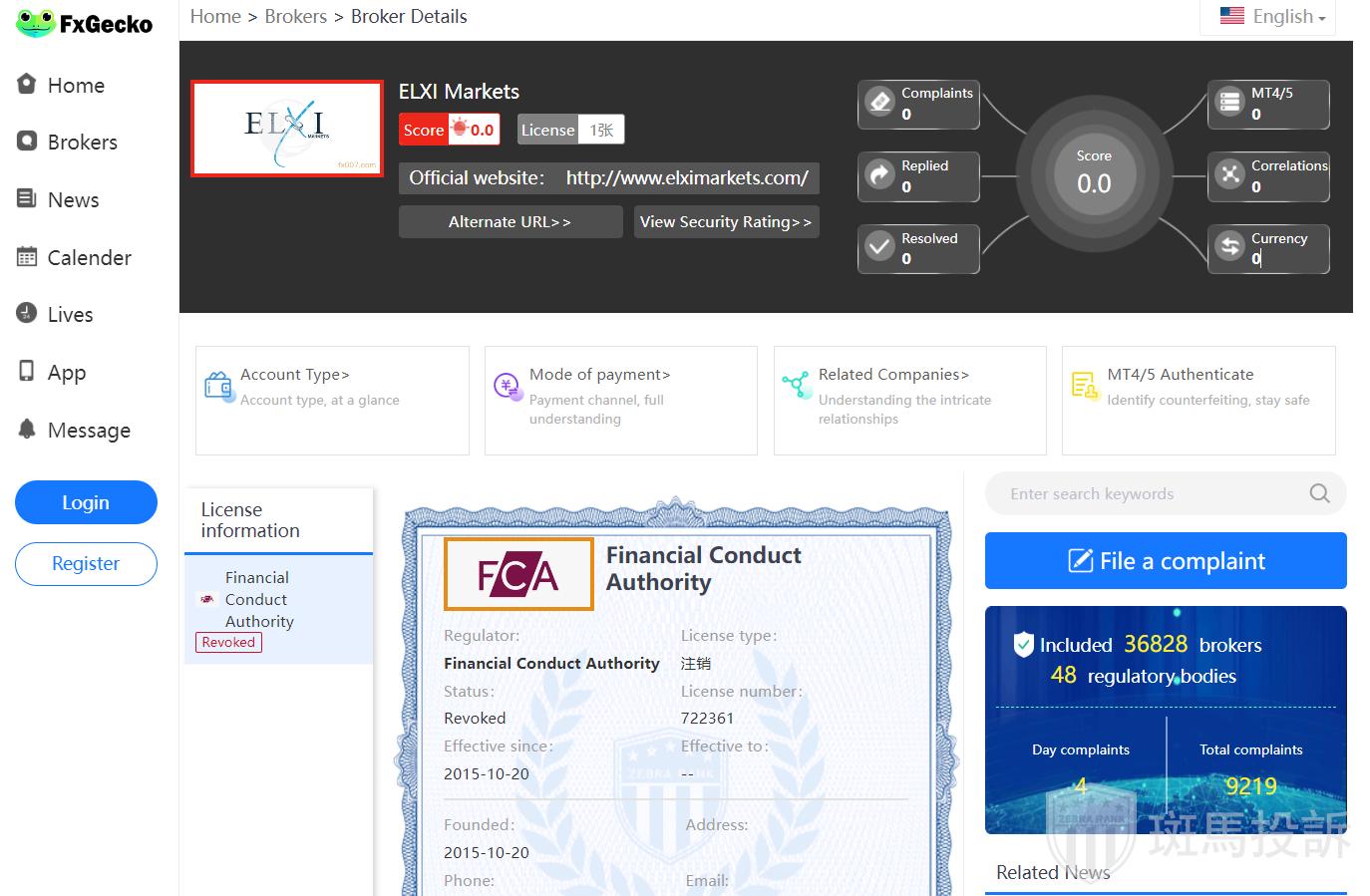 The name of this broker is ELXI Markets, founded 9 years ago and ranked 5334 in the world.