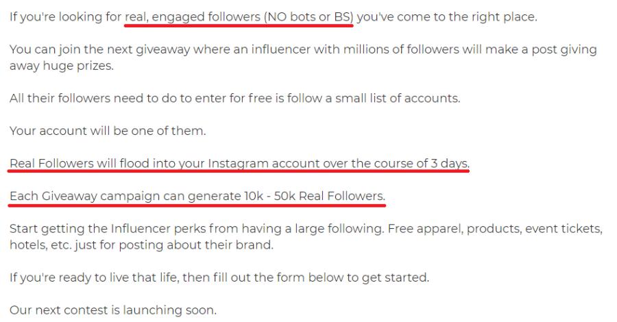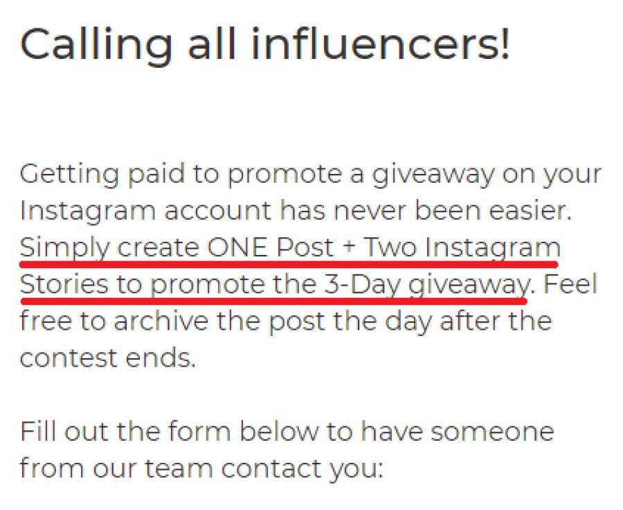 They tie-up with accounts having many followers (Influencer accounts) and pay them to create posts for giveaways.