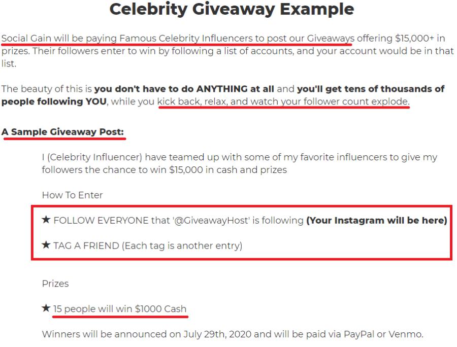 SocialGain.io is a company that claims to help users gain Instagram followers by organizing giveaways from Influencer accounts. They are operating two websites - socialgain.io and socialgains.co. The reason for this is unclear; it is probably done for SEO purposes as the domain sociagains.co is an older domain that was purchased more recently. However, the domain socialgain.io has a lower Alexa rank, which means it is more popular. The website speed and design suggest that it is a professional website. SocialGain claim that they can help users increase their follower count by 10,000 to 50,000 in 3 days.