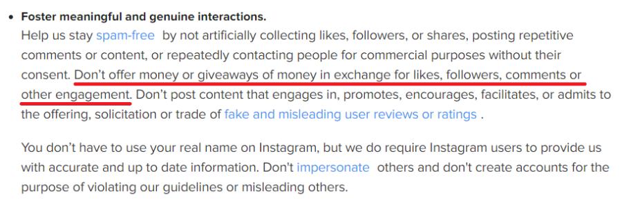 This directly goes against Instagram’s policies and is therefore not allowed on the platform.