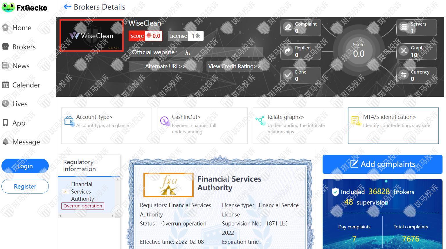 This broker is called WiseClean which was founded less than 1 year ago and is ranked 2440 in the world. At present, there are 0 foreign exchange licenses, and the risk scan shows 3 risks. Investors need to pay attention to relevant risks.