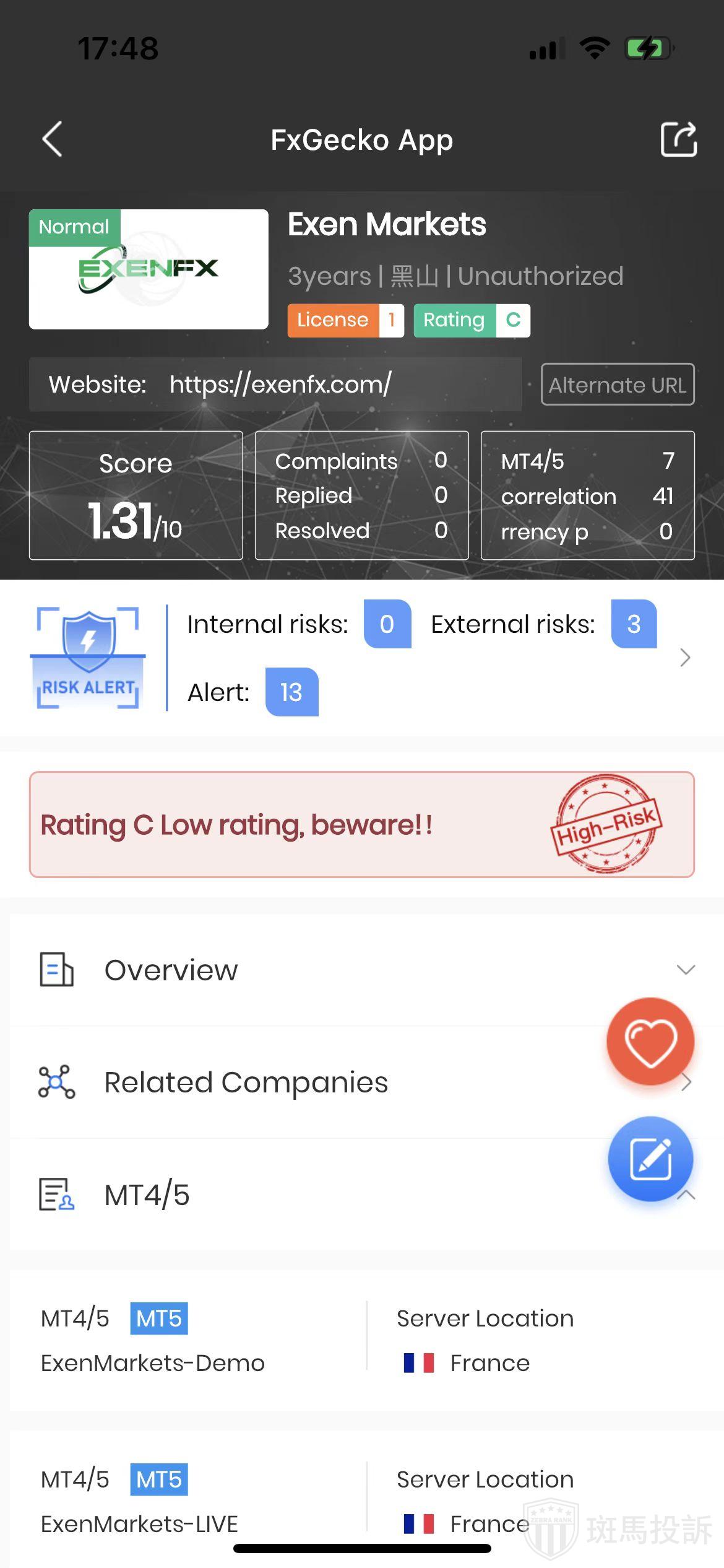 This broker is called Exen Markets, which has been established for one year and ranks 4404 in the world. At present, there are 0 foreign exchange licenses, and the risk scan shows 16 risks. Investors need to pay attention to relevant risks.