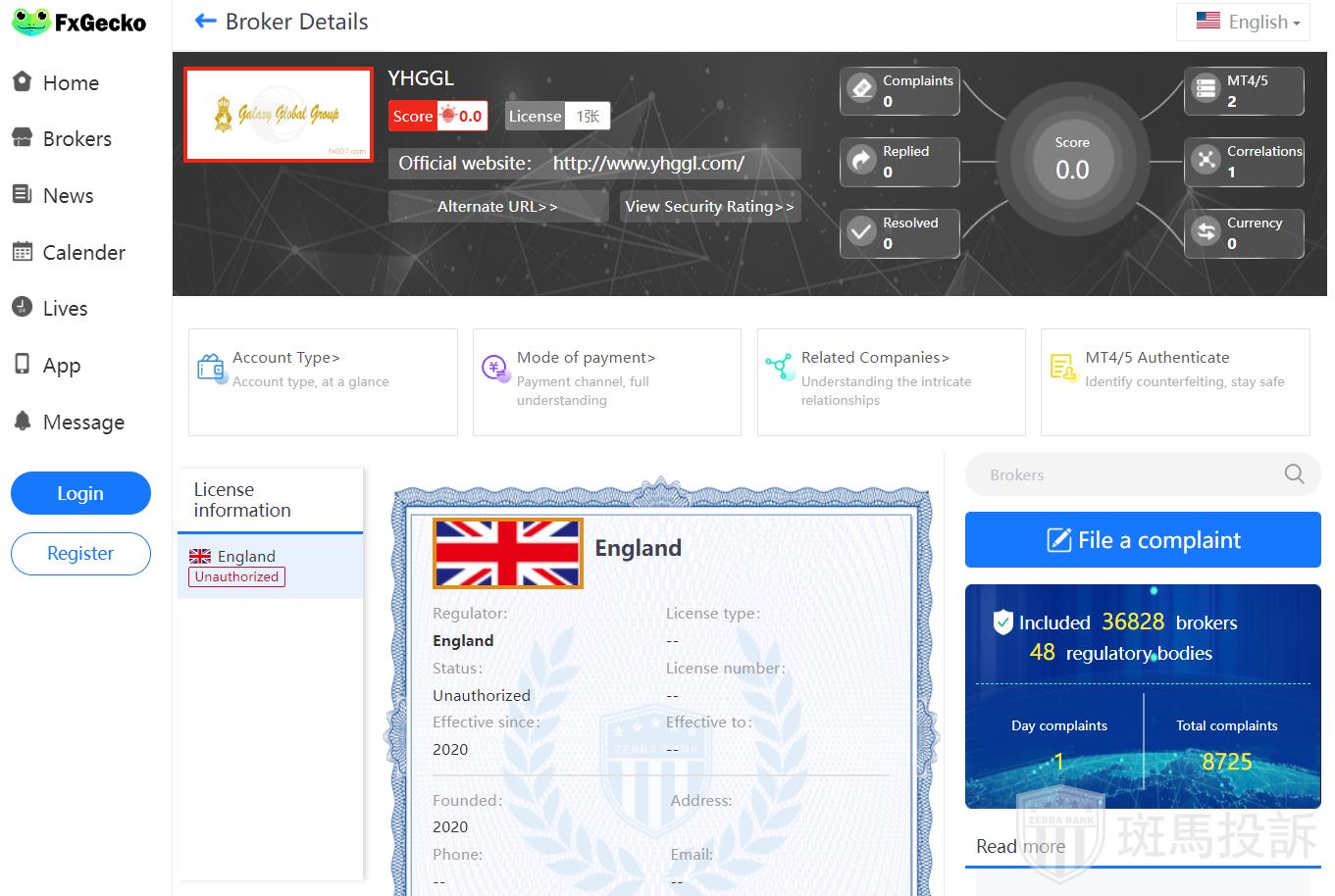 The name of this broker is YHGGL, founded 3 years ago and ranked 3134 in the world.