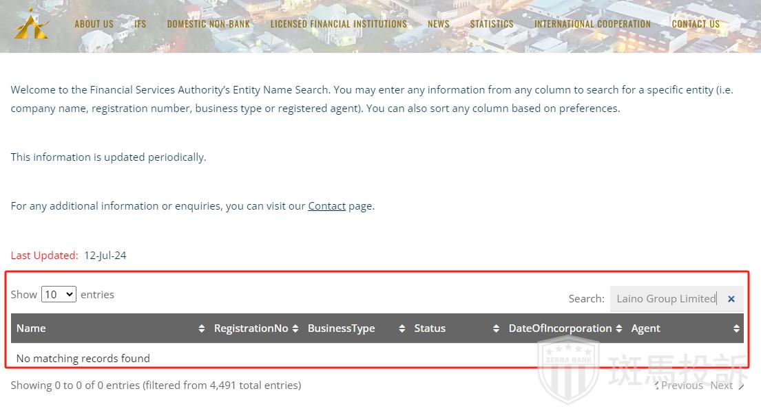 However, there is no registration informationfor Laino Group Limited on the Saint Vincent and the Grenadines Financial Services Authority (FSA) website.
