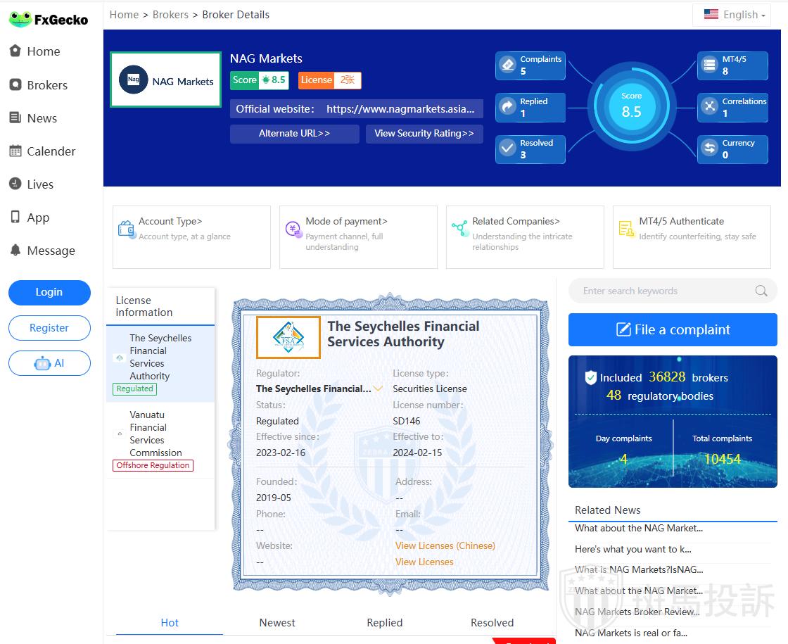 1.Company Background and Regulation: NAG Markets was formally merged into DBG Shieldbrook Group as its wholly-owned holding company on 21 October 2024.NAG Markets has obtained important financial services licences from the Financial Services Authority of Seychelles (FSA SDL146) and the Vanuatu Financial Services Commission (VFSC FDL41699), which further strengthens its global regulatory regime.