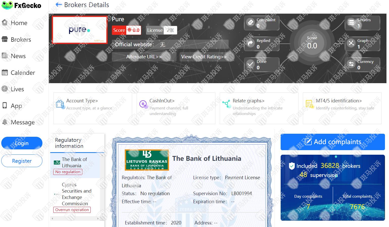 This broker is called Pure which was founded less than 1 year ago and is ranked 1471 in the world. At present, there are 0 foreign exchange licenses, and the risk scan shows 3 risks. Investors need to pay attention to relevant risks.
