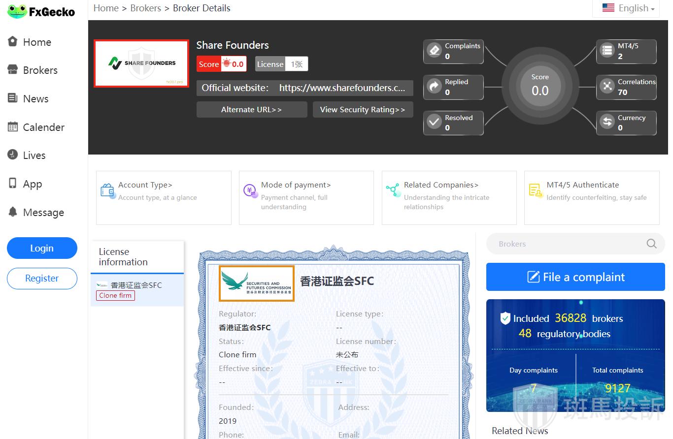 Currently, no valid regulatory information has been found for Share Founders, which is a high risk sign, beware!