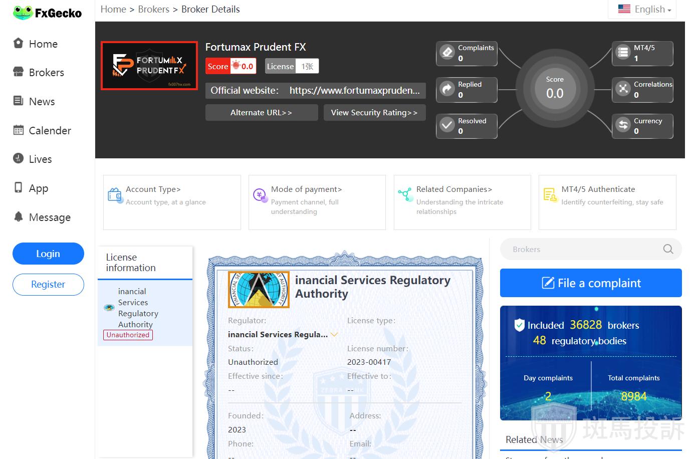 Currently, no valid regulatory information has been found for Fortumax Prudent FX, which is a high risk sign, beware!